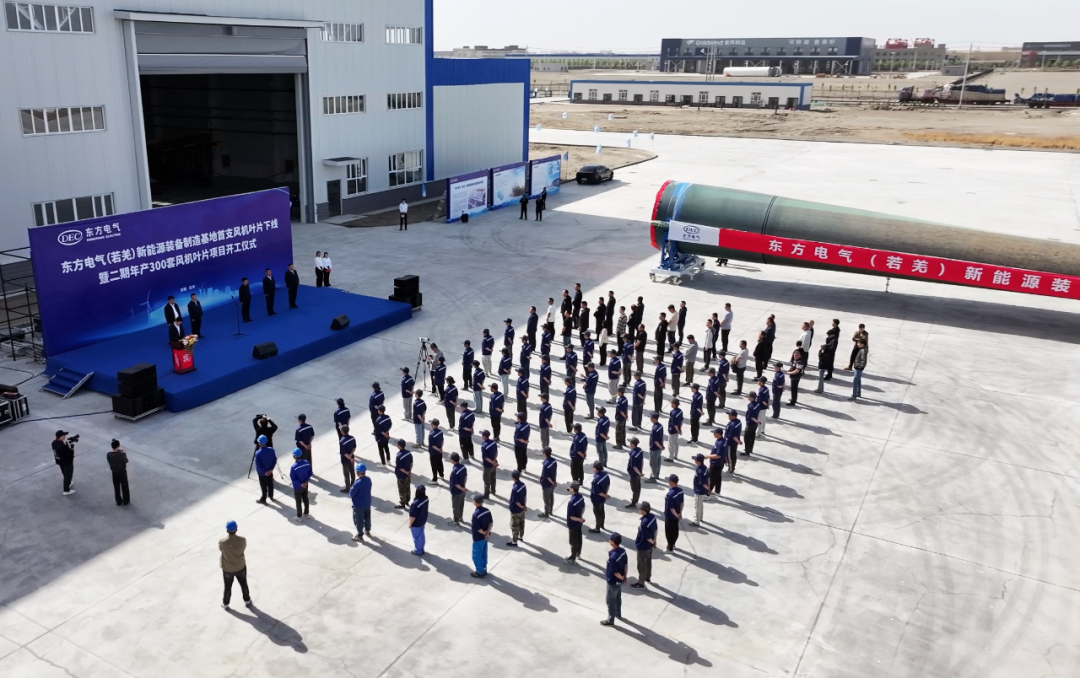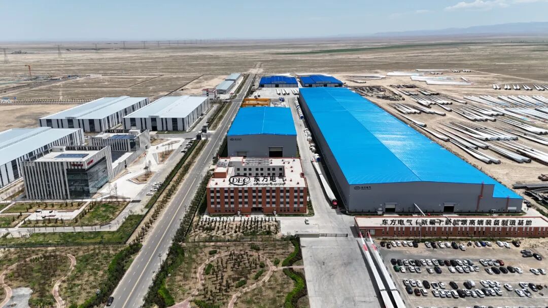 2022年4月16日,东方风电在新疆木垒县举行集中开工仪式,划破了戈壁工业园区的沉寂。集团公司战略指导、东方风电总部统筹规划、新疆基地快速落地、政企协同支援保障,仅仅5个月的时间,一座现代化的风电主机及叶片生产制造基地便拔地而起。同年9月,基地顺利投产,正式拉开奋斗序幕。三年来,基地全体干部职工抢建设窗口、顶罕见寒潮、抓物资保障、促民族团结、破产量纪录,用三载春秋书写了一段从荒芜到千万千瓦级风电装备制造基地的传奇 —— 这是东方风电人与困难较劲、与时间赛跑的奋斗史诗,更是东方风电人向祖国献上的一份厚礼。