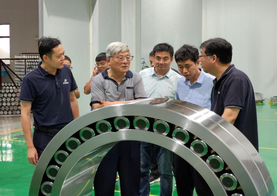 (专家组听取项目汇报并进行现场质询) 项目聚焦风电主轴轴承制造中长期存在的“卡脖子”难题——无软带淬火技术,经纬联合合作伙伴经过多次改进、试验验证,研发出具有自主知识产权的无软带淬火设备与配套工艺体系,有效突破国外技术垄断,解决了传统淬火工艺成本高、效率低的行业痛点。 (采用无软带淬火技术制造的SRB主轴轴承) 在核心技术层面,项目实现三大创新突破: 材料体系创新:通过添加微量合金元素,开发出高强度、高淬透性新型套圈材料,更好匹配无软带感应淬火工艺需求; 工艺控制突破:研发淬火感应器高精度伴随跟踪技术,攻克大型轴承淬硬层均匀性控制难题; 设计方法升级:自主开发新型轴承设计软件,有效解决复杂工况下系统耦合变形问题。 (专家组实地考察无软带淬火技术应用成果) 目前,该产品已通过北京鉴衡认证中心认证,各项性能指标均满足陆上风电主轴承20年使用寿命要求,并在明阳智慧能源集团实现挂机应用。项目已累计申报发明专利4项,获授权实用新型专利1项、软件著作权3项,参与制定国家标准1项,展现出良好的技术成熟度与产业化应用前景。 据了解,经纬股份近几年持续在风机SRB、TRB、DTRB主轴轴承、智能跟踪式光伏领域加大研发技术投入,并取得了多项重要里程碑进展成果。公司光伏跟踪减速器产品远销欧洲、北美、南美、中东以及一带一路等多个国家,每年外汇创收数亿元。 此次技术突破,不仅体现了经纬公司在高端轴承领域的创新实力,更为风电行业提供了性能可靠、成本优化的国产主轴轴承解决方案,助力推动我国风电装备自主化建设。