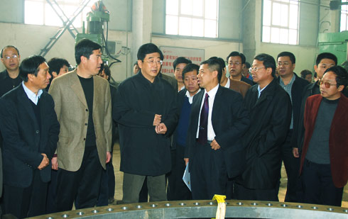 省长孟学农视察金瑞公司风电法兰生产线并与兰鹏光总经理亲切交淡